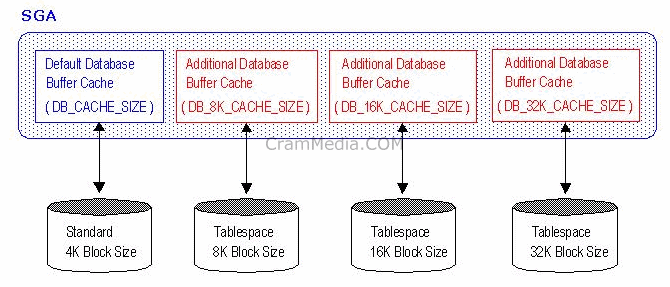 データベースで複数のブロック・サイズを使用する場合は、DB_CACHE_SIZE 、および少なくとも 1 つのDB_nK_CACHE_SIZE パラメータを設定する必要があります。Oracle は、DB_CACHE_SIZE パラメータに適切なデフォルト値を割り当てますが、DB_nK_CACHE_SIZE パラメータはデフォルトで 0 に設定され、追加のブロック・サイズ・キャッシュは構成されません。