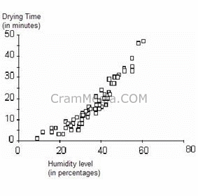 あなたは湿度と部品が乾燥するまでの時間との一次関係を示すグラフを調べています。このグラフには2つの要素の直接関係が示されており、湿度が上がると乾燥時間も長くなります。